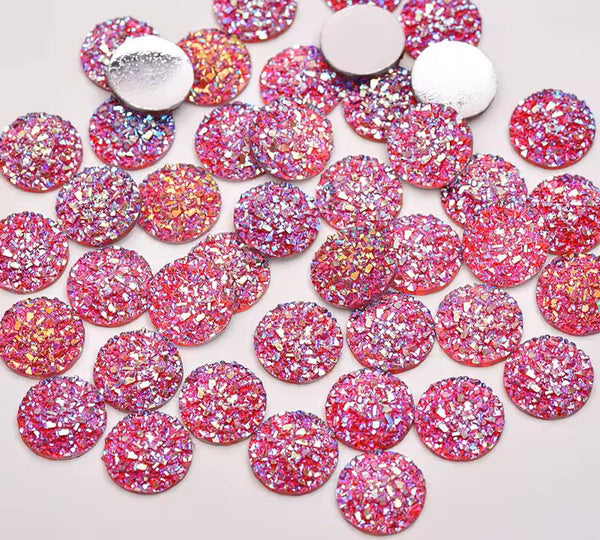 Add radiant sparkle to your designs with these stunning 12mm round flat back rhinestones featuring a beautiful multifaceted round stone with an AB finish. Designed to catch the light from every angle. Appears darker in lower light levels.